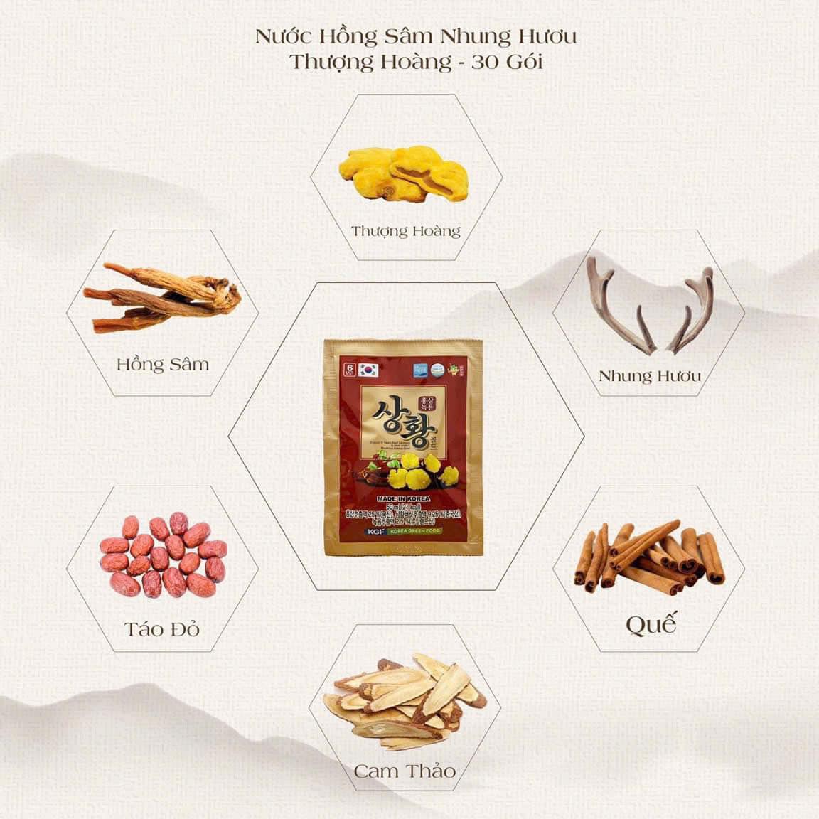 Hồng sâm: Với 25% chiết xuất từ hồng sâm, loại thảo dược này đã được biết đến hàng ngàn năm qua với khả năng tăng cường sinh lực, chống oxy hóa và nâng cao sức đề kháng.