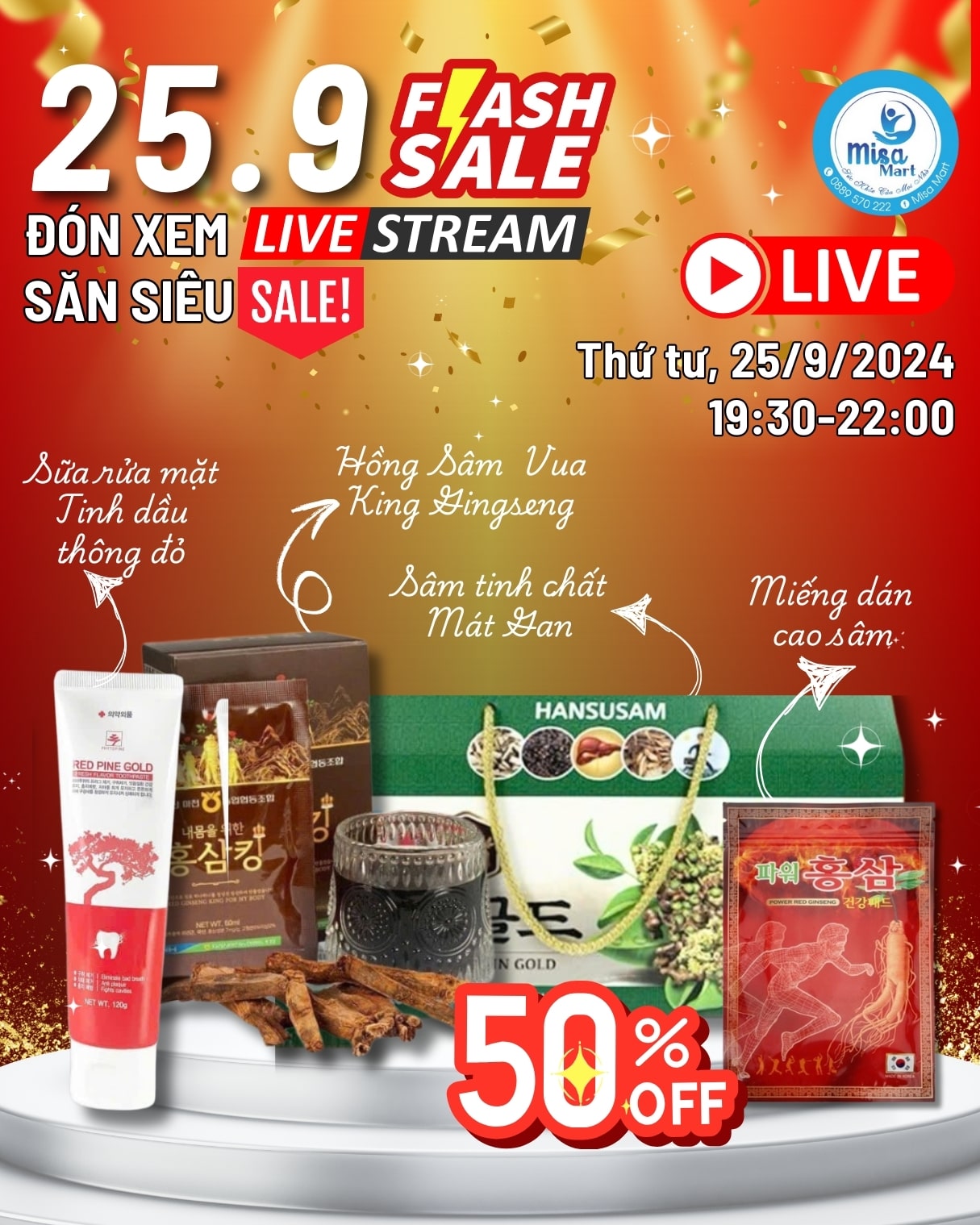 🎥 Địa điểm: Trực tiếp trên Livestream của fanpage Hồng Sâm Misa Mart!